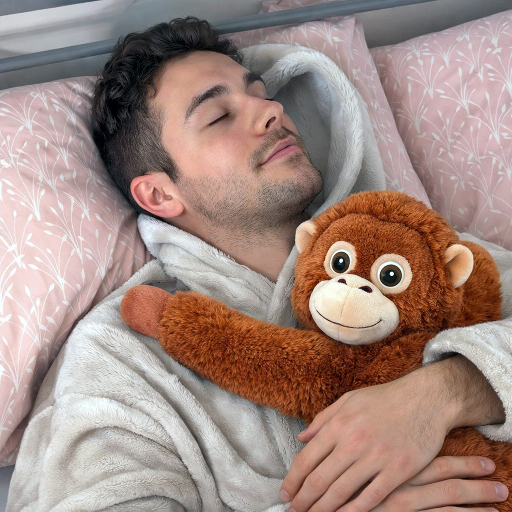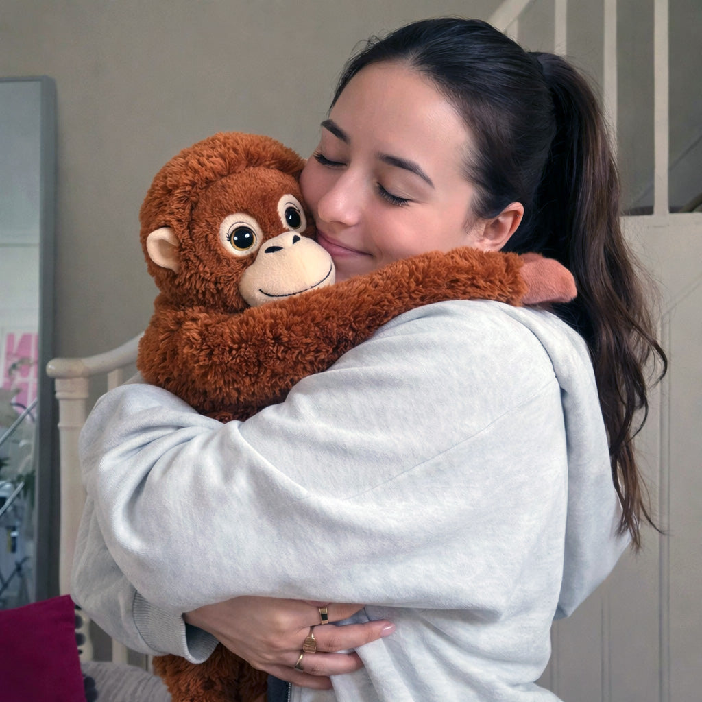 Punch no es un peluche decorativo. Su diseño con brazos largos y envolventes genera una presión suave que ayuda a que el cuerpo se relaje. Es esa sensación de abrazo que hace que bajes el ritmo casi sin darte cuenta.